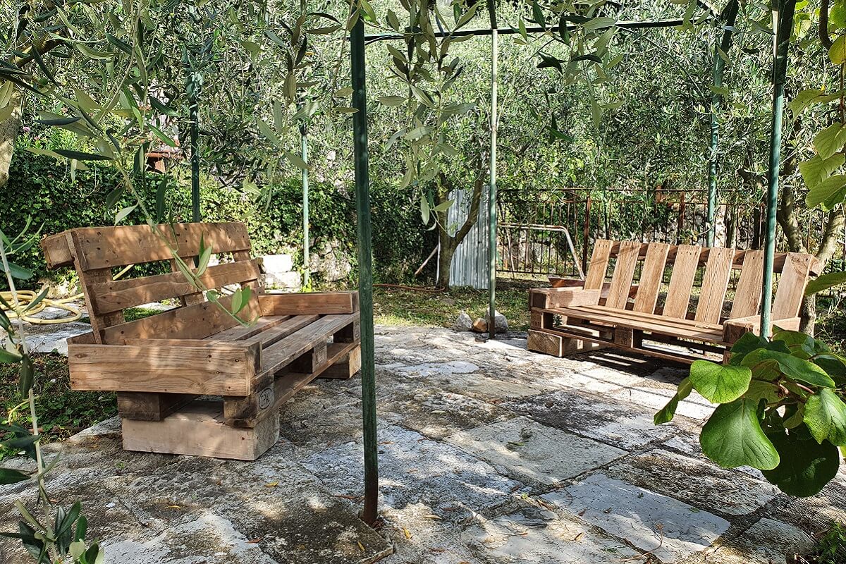 Installez-vous confortablement dans votre jardin… Il ne reste que quelques coussins à ajouter sur ces banquettes en palettes !